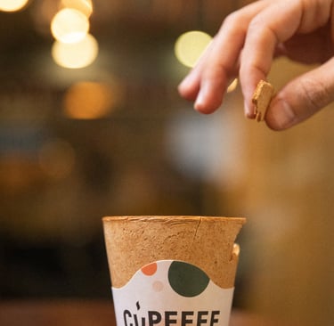 Cupffee bardakları tamamen doğal ve yenilebilir malzemelerden üretilir, böylece atık oluşturmaz.